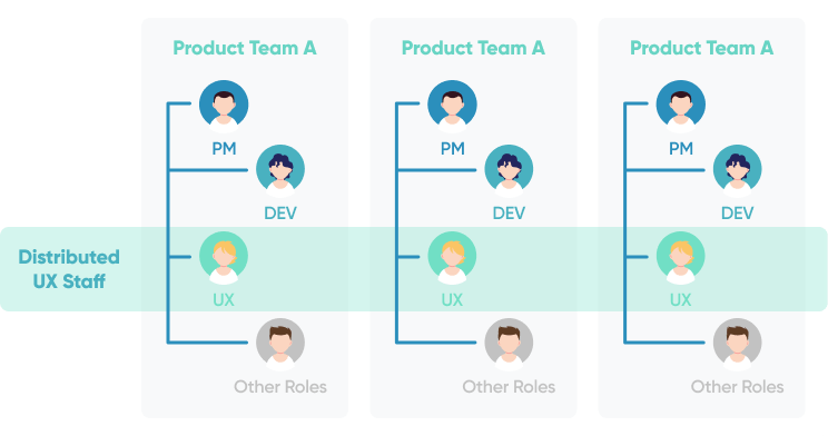 1. Centralized teams – All UX professionals report to a UX manager and work as consultants across the organization.