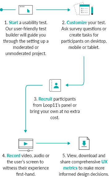 Loop11 provides the fastest and easiest way for you to set up and run a usability project. You could have results back within 24 hours! There’s no code to insert and no IT or usability knowledge required. Our step-by-step approach will guide you through the process, but we’ve got awesome support available if you need it